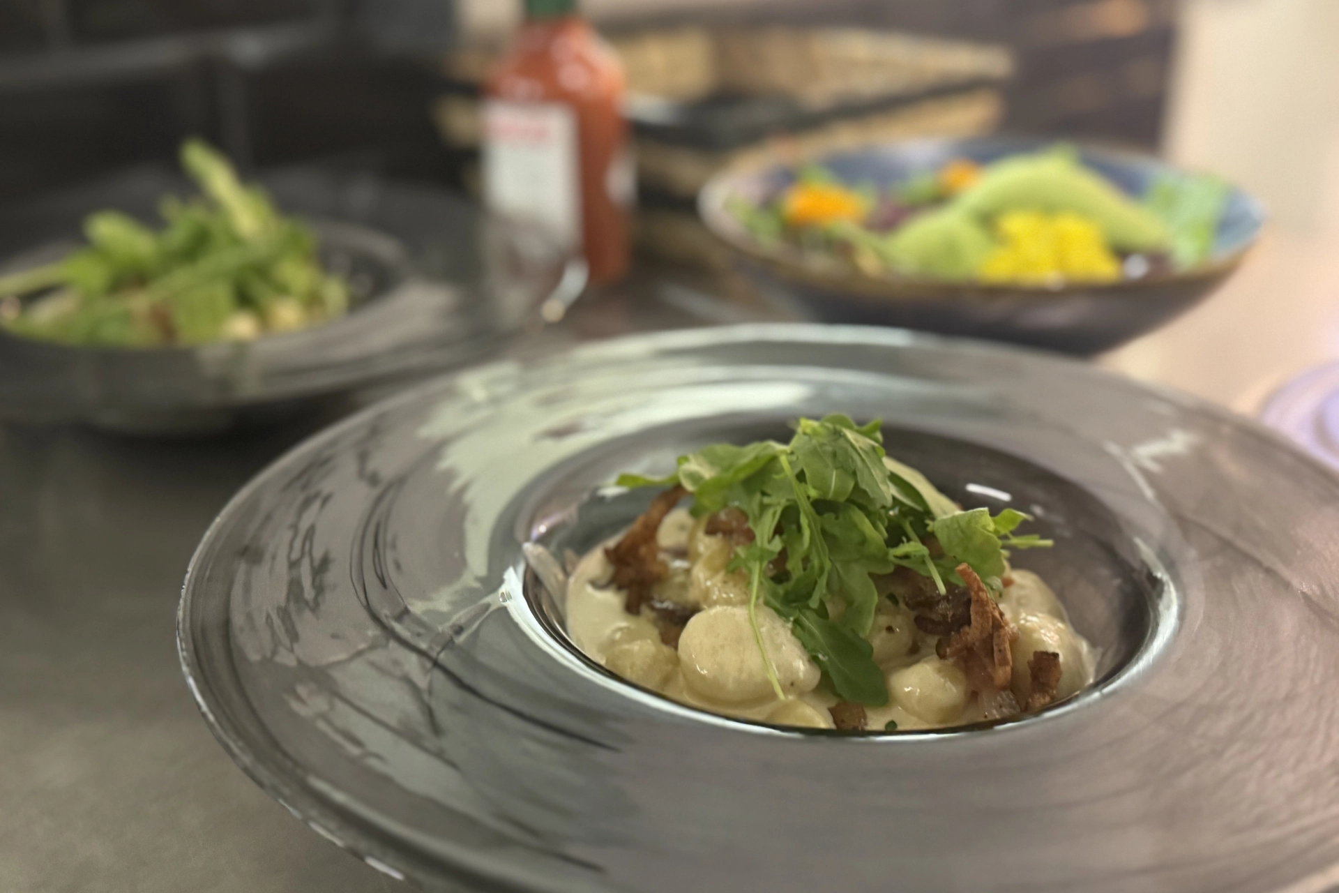 Farce à la chair d’écrevisse, sauce bisque de langoustines.